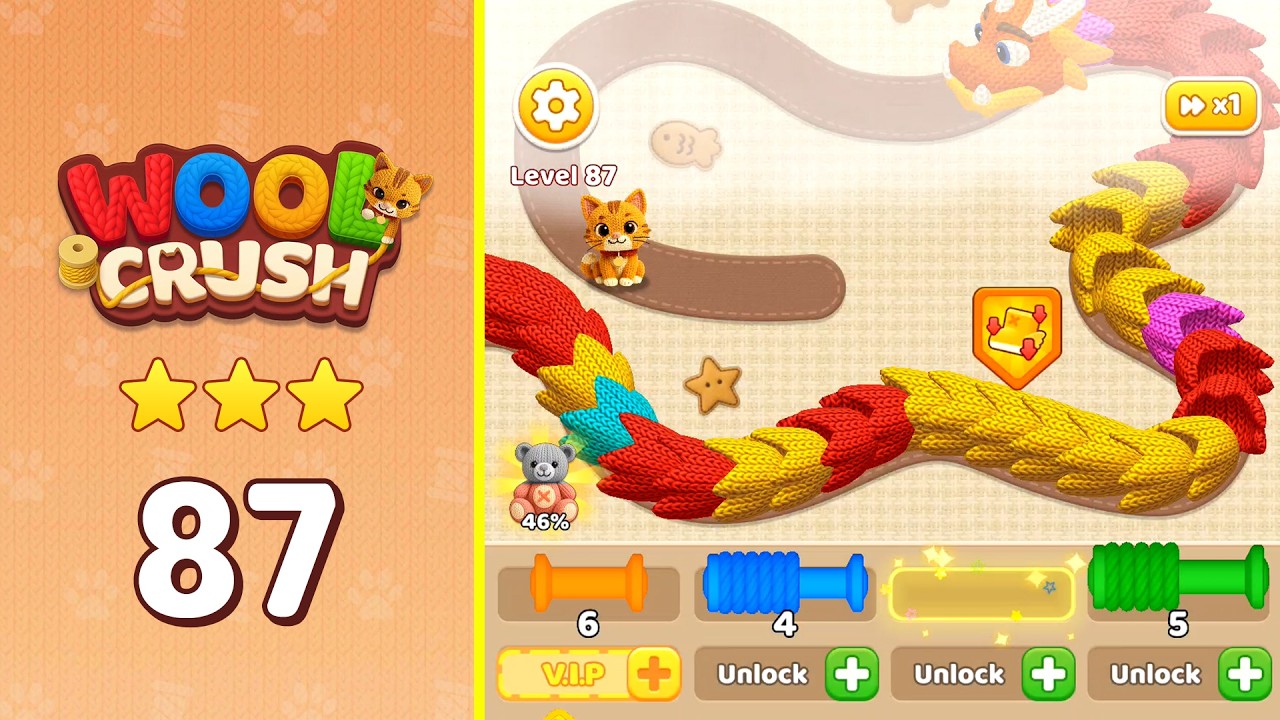 Wool Crush does not offer a direct "skip" option without spending in-game currency or watching an ad. The best approach is to use the walkthrough above to solve it step by step.