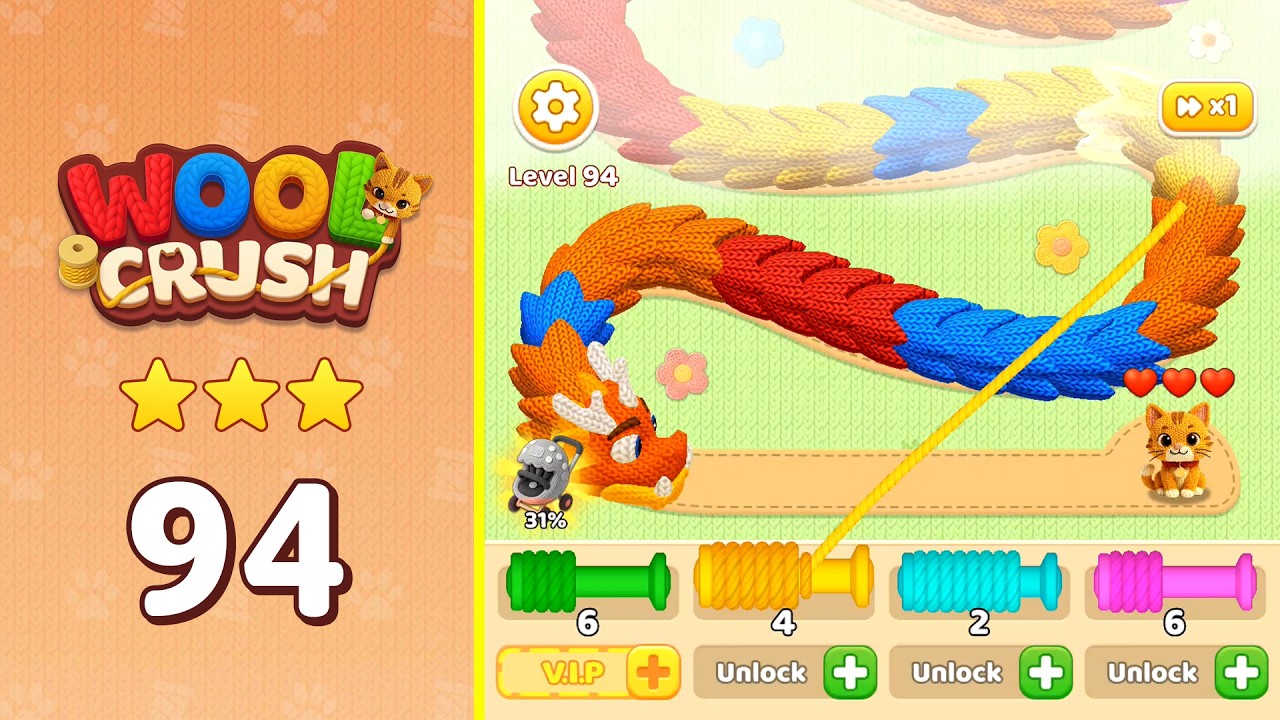 Wool Crush does not offer a direct "skip" option without spending in-game currency or watching an ad. The best approach is to use the walkthrough above to solve it step by step.